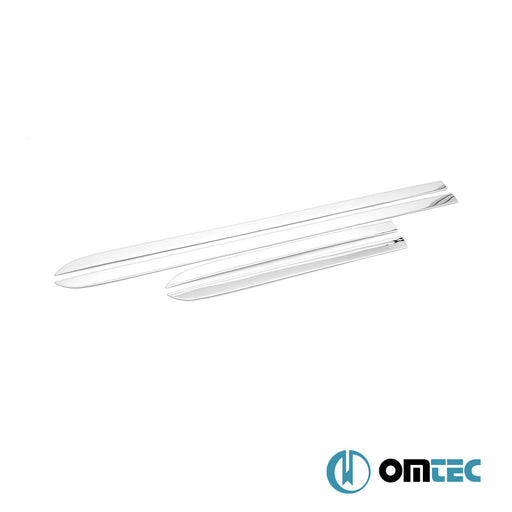Krom detaylar, otomotiv tasarımında yıllardır kullanılan zarif bir unsurdur. Omtec’in krom yan kapı çıtaları, özellikle beyaz, gri ve siyah renkteki araçlarda kontrast etkisiyle öne çıkar. Parlak yüzeyi aracın yan çizgilerini vurgular ve modern bir görünüm oluşturur.
